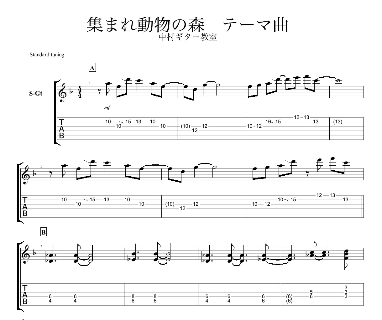 【あつまれ どうぶつの森】ギターTAB メロディー 【オリジナル譜面】