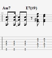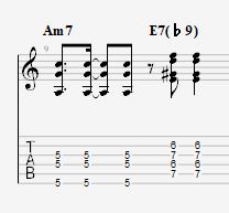 Am/E7を普通に弾くだけだと 面白みがない感じがしたので