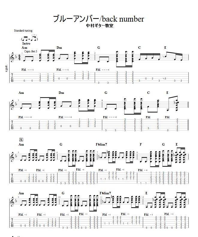 弾き語り【ブルーアンバー/back numberバックナンバー】TAB譜
