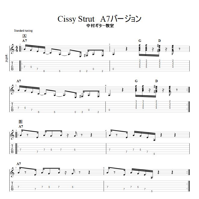 有名曲【Cissy Strut】keyC,keyA,keyD【3つのtab譜】