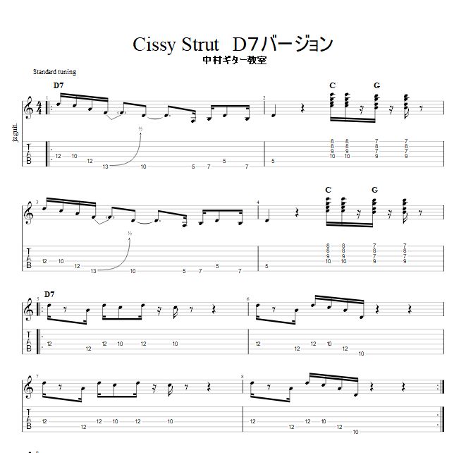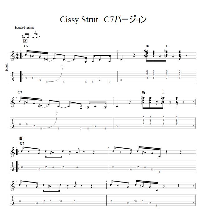 ファンクギターの有名曲【Cissy Strut】keyC,keyA,keyD【3つのtab譜】つくってみました