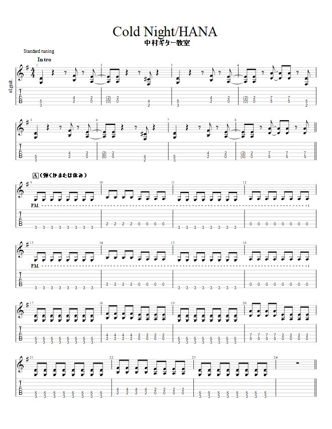 エレキギターで弾ける【Cold Night/HANA】カンタンTAB譜,動画つくってみました