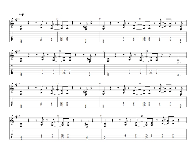 Aメロ8小節は、オリジナル音源にギター音が入っていませんが
