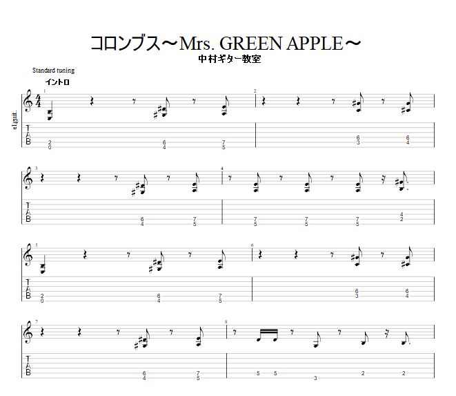 【コロンブス/Mrs. GREEN APPLE】オリジナルtab譜つくってみました