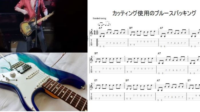 レイヴォーン風カッティングギター【Aブルースバッキング】オリジナルtab譜つくってみました