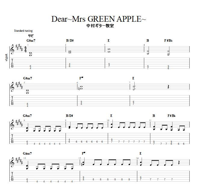 Dear~Mrs. GREEN APPLE~】オリジナルtab譜