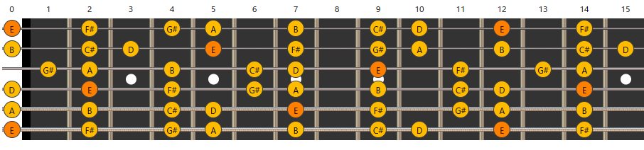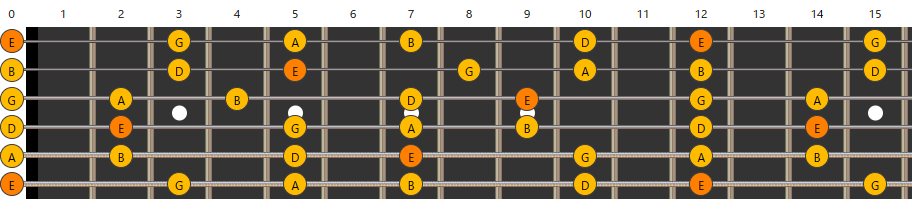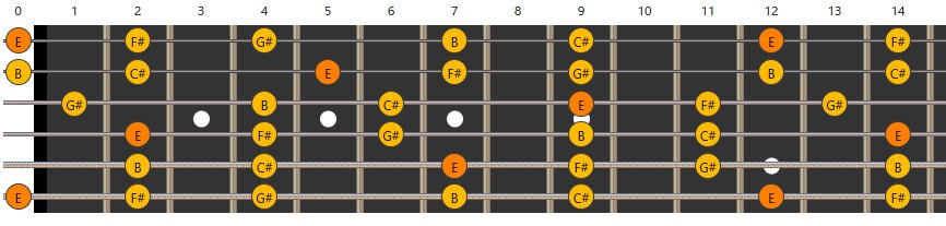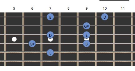 E7上のコードで特徴的なのがマイナーとメジャーのペンタトニックスケールが