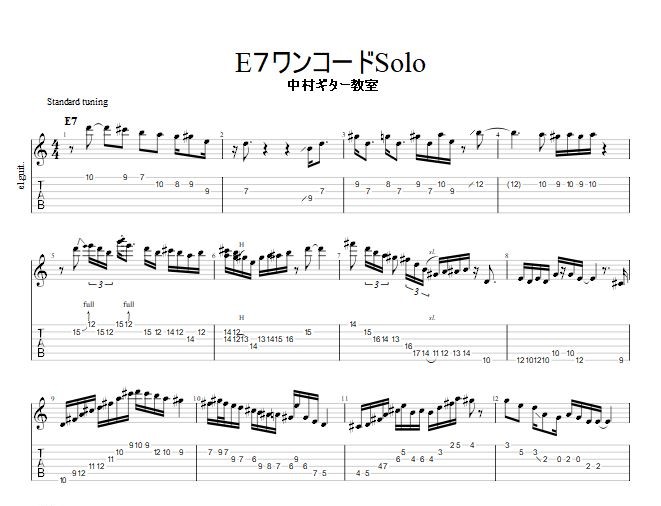 今日は、【E7ワンコードでアドリブソロ】のオリジナルtab譜とソロの作り方