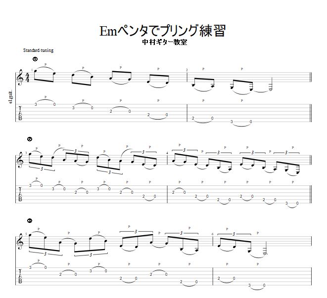 Emペンタトニックスケールでプリングを使って弾いても楽しそうですね。
