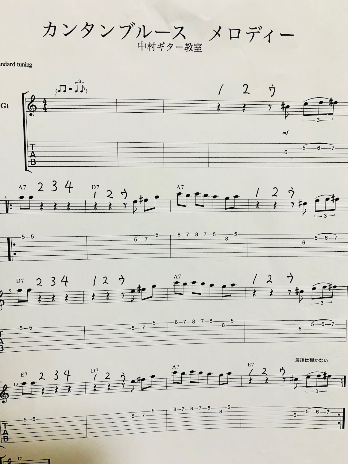 【カンタンAブルースメロディーTAB譜面】のご紹介です。
