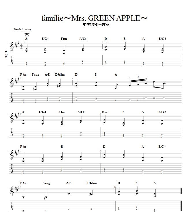 【familie/Mrs. GREEN APPLE】オリジナルtab譜