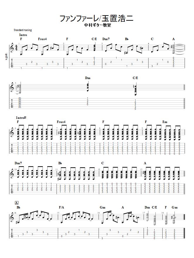【ファンファーレ/玉置浩二】TAB譜つくってみました