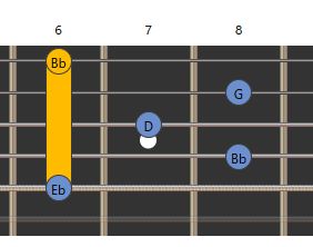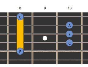 エレキギターで弾く場合 ハイポジションのコードフォームで
