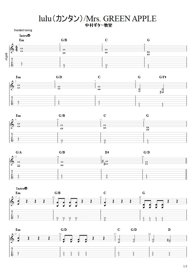 【lulu/Mrs. GREEN APPLE】カンタンTAB譜