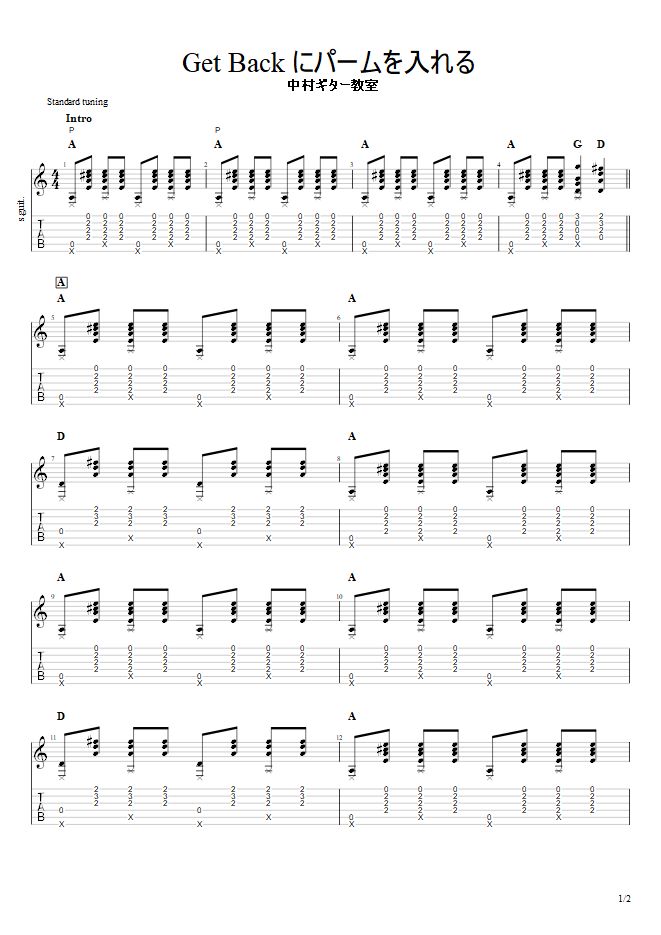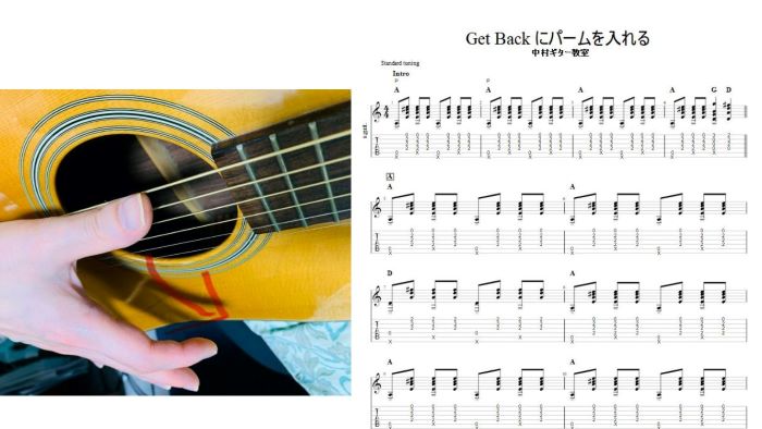 アコースティックギターにアレンジを【名曲Get Back/Beatles】パーム入りオリジナルtab譜つくってみました。