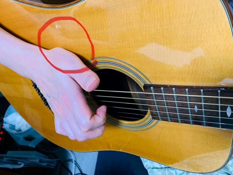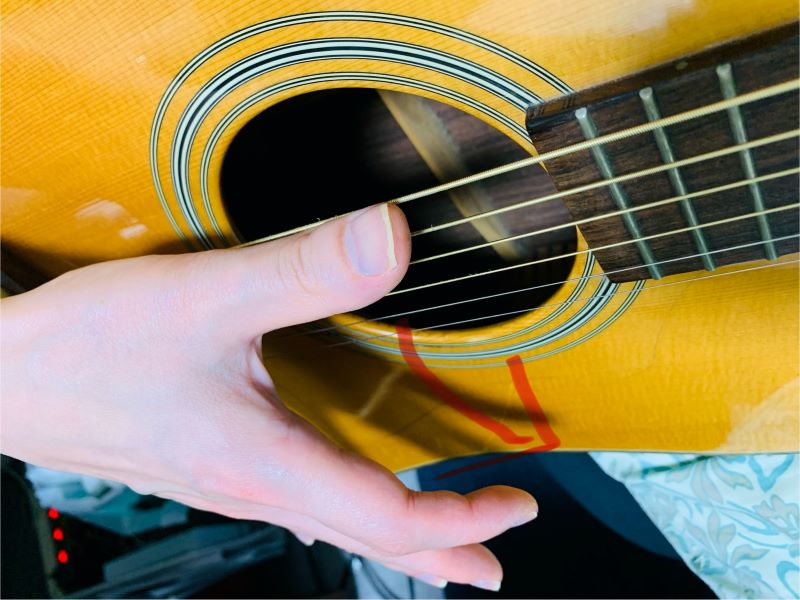 親指で打撃音を入れるので 先ほどのボディーを叩く弾き方と原理を