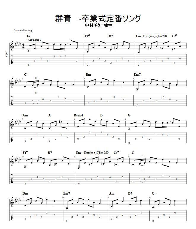 【群青/南相馬市立小中学校卒業生】アコースティックギターtab譜