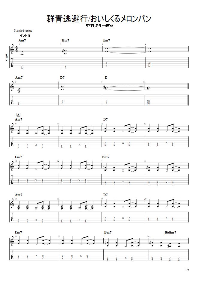 エレキギターで弾ける【群青逃避行/おいしくるメロンパン】カンタンtab譜つくってみました