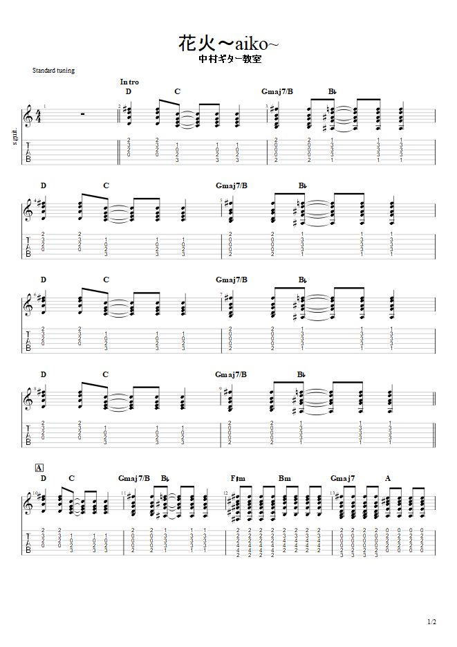 アコースティックギターで弾ける【花火/aiko】オリジナルtab譜です!