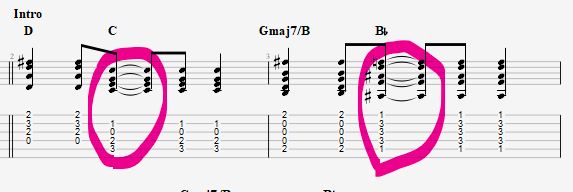 アコースティックギターのリズム練習とコードチェンジ練習にも丁度良い曲です。