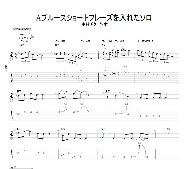 ショートフレーズ使用例 ギターソロTAB譜