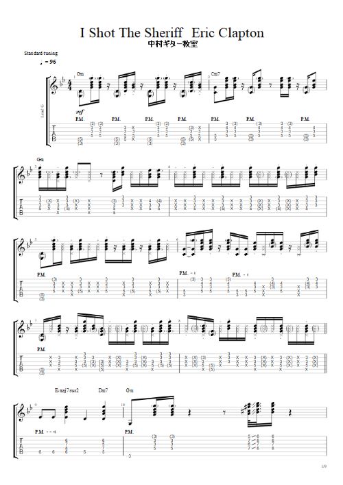 【I Shot The Sheriff/エリッククラプトン】tab譜つくってみました。