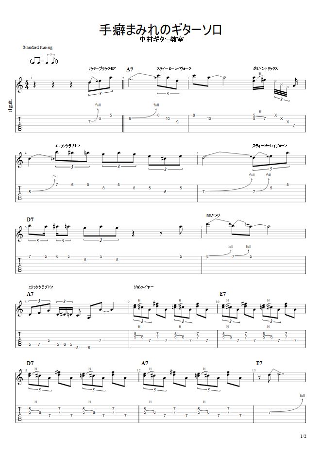 今日は、ブルースギター【手癖まみれのレジェンドソロ】オリジナルtab譜