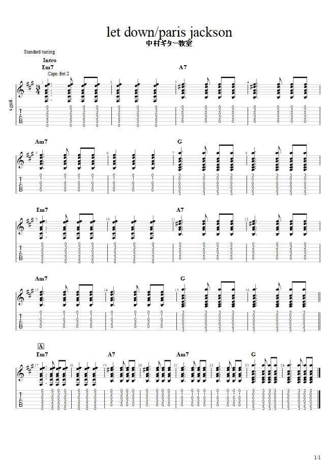 隠れた癒し系【 let down/パリスジャクソン】ストロークtab譜