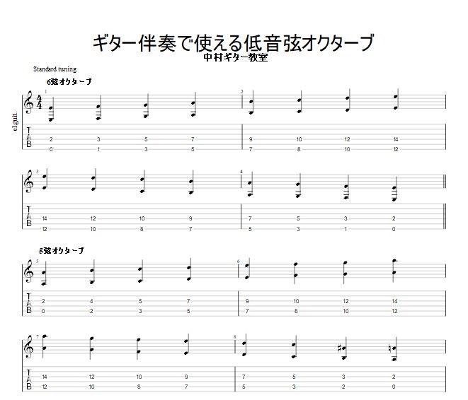 ギター伴奏でコード弾きやリフに使える【低音オクターブ奏法】基礎練習tab譜作ってみました