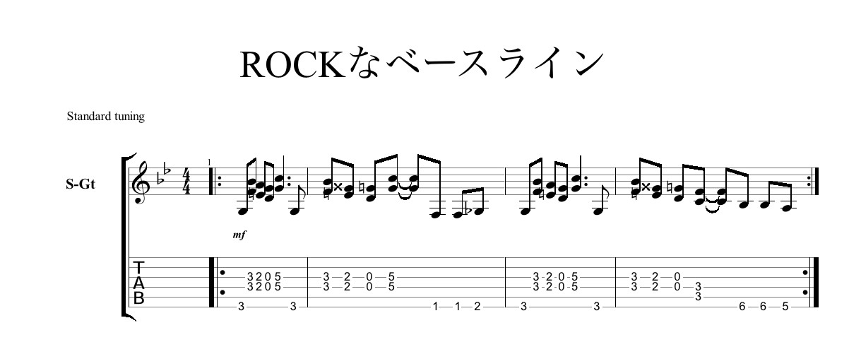ベースラインを作ってみました。このように簡素な譜面になるので