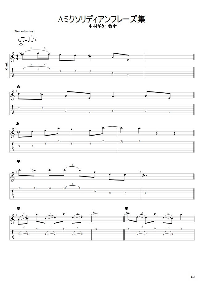 【Aミクソリディアンフレーズ集】オリジナルtab譜のご紹介です♪