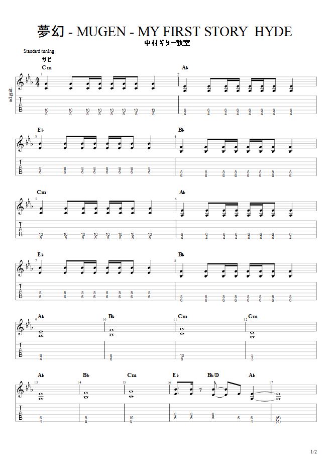 【夢幻 – MUGEN /MY FIRST STORY, HYDE】カンタンオリジナルtab譜