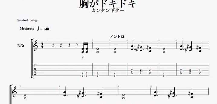 TAB譜面だけ掲載してもあまり雰囲気がわからないかもしれないので