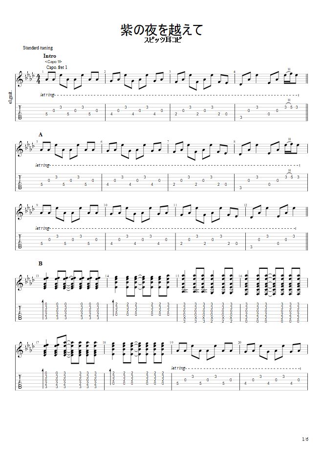エレキギターのアルペジオ練習に最適【紫の夜を越えて/スピッツ】耳コピしてtab譜にしてみました