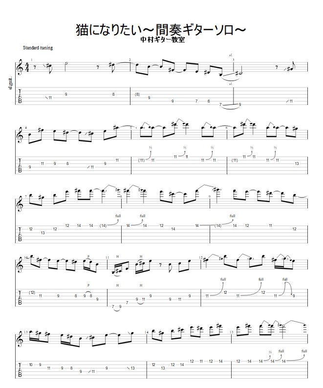 【猫になりたい間奏ギターソロtab譜/スピッツ】譜面がない時は耳コピが練習になります