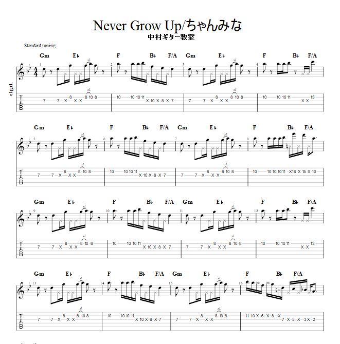 【Never Grow Up/ちゃんみな】オリジナルTAB譜