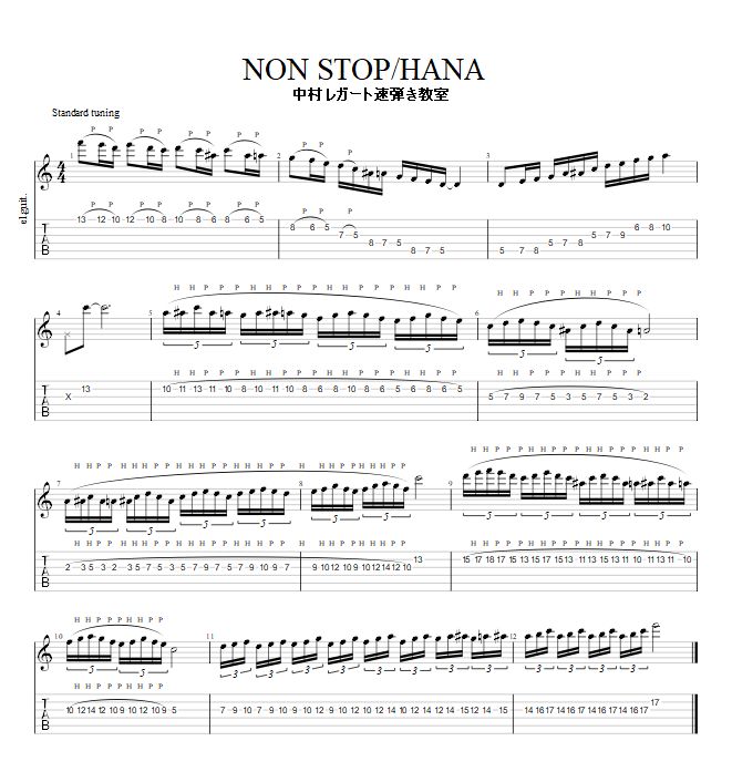 エレキギターで弾きまくれる【NON STOP/HANA】オリジナルTAB譜レガート奏法編