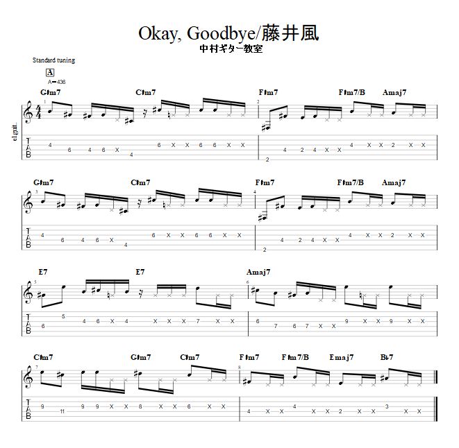 【Okay, Goodbye/藤井風】オリジナルtab譜