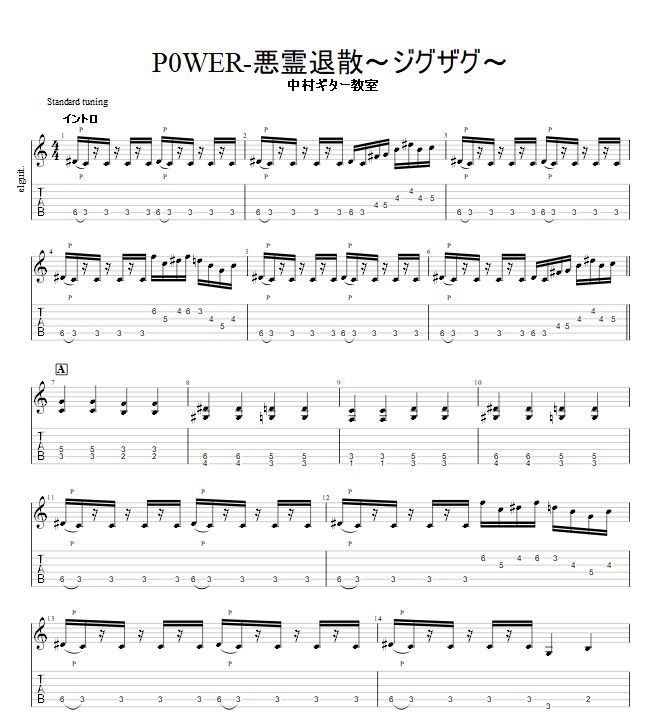 エレキギターで弾ける【P0WER-悪霊退散/ジグザク】耳コピtab譜つくってみました