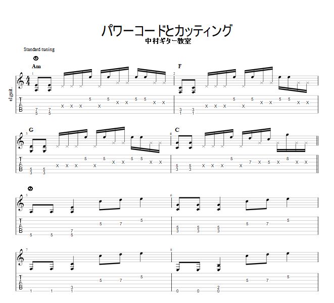 エレキギターで奏法合体【パワーコードとカッティング】練習tab譜つくってみました