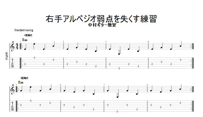 ギターの右手のピッキング【弱点を失くす練習】アルペジオtab譜つくってみました