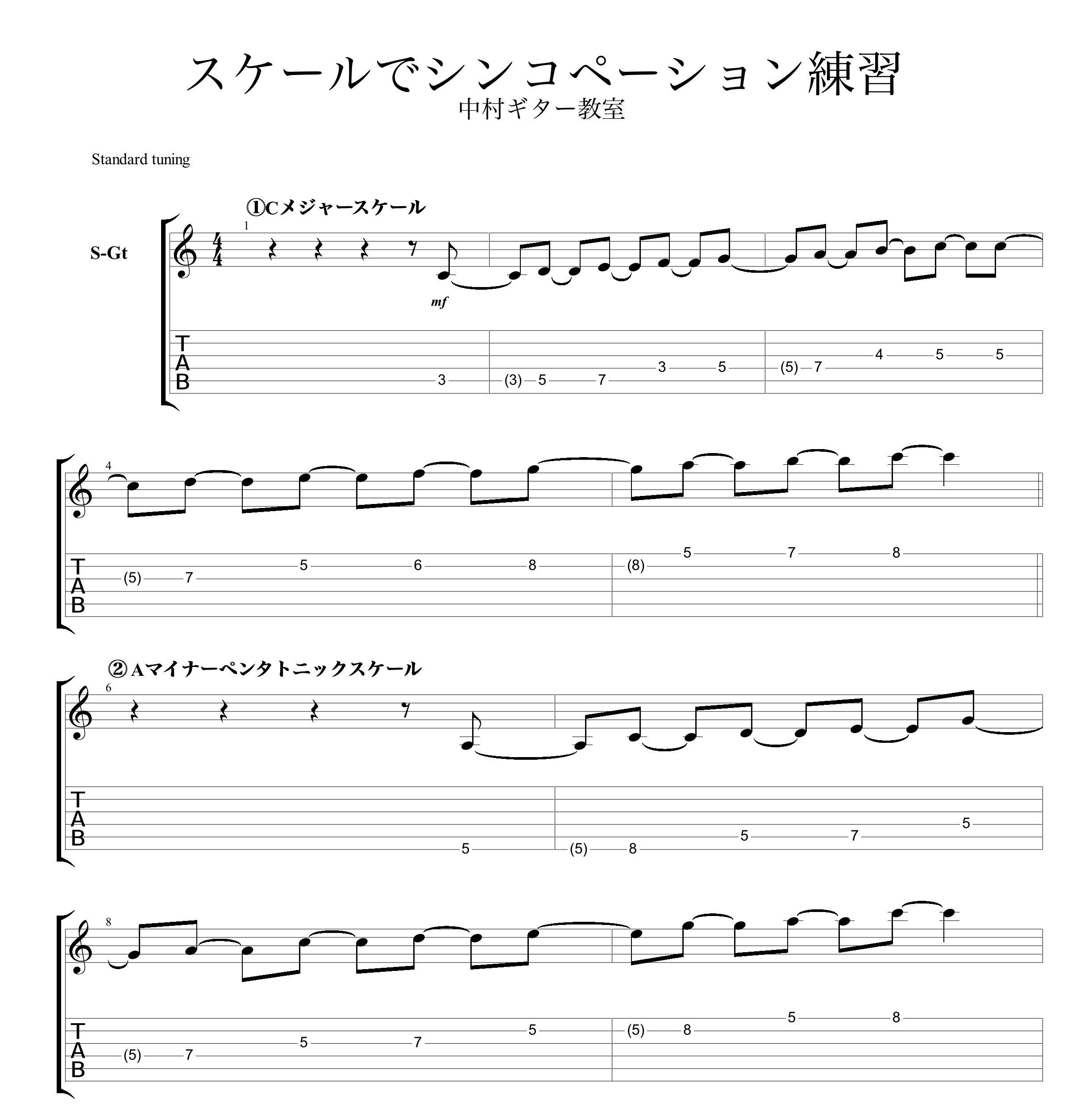 簡単なスケールを使って【シンコペーションの練習】ギターリズムの定番です