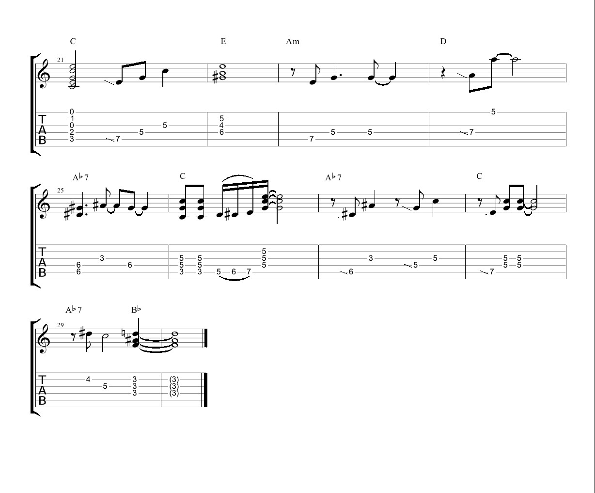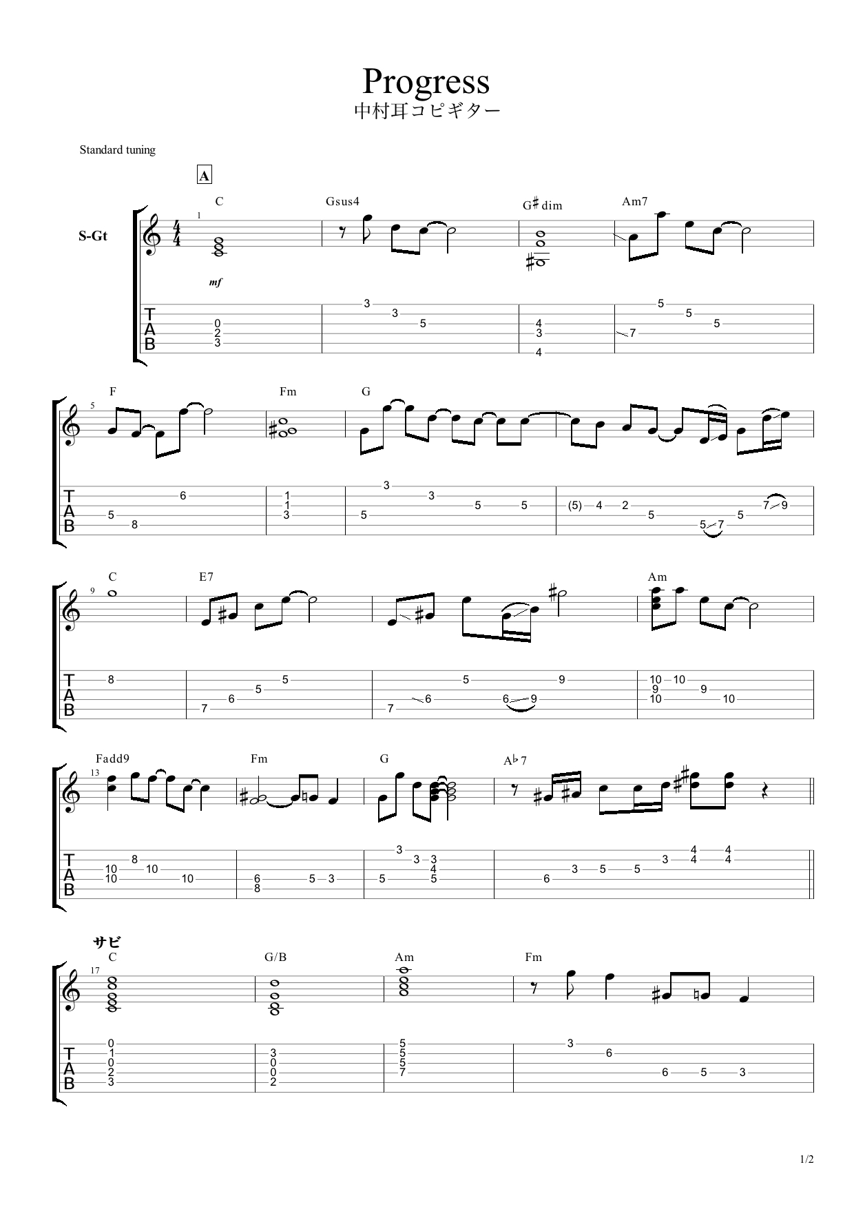 このように ギターTAB譜面に起こして分析してみました♪