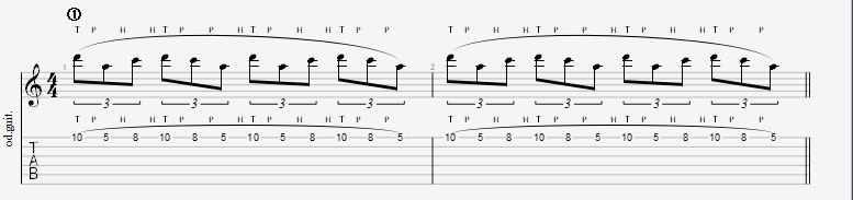 フレーズ1は、伝統的ライトハンドフレーズになります。