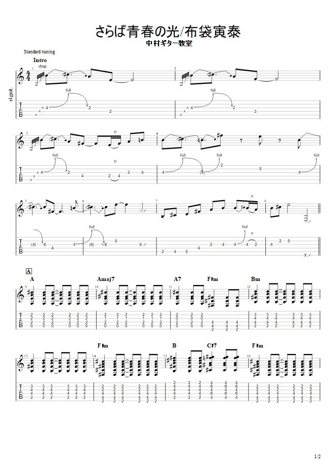 【さらば青春の光/布袋寅泰】正確なTAB譜