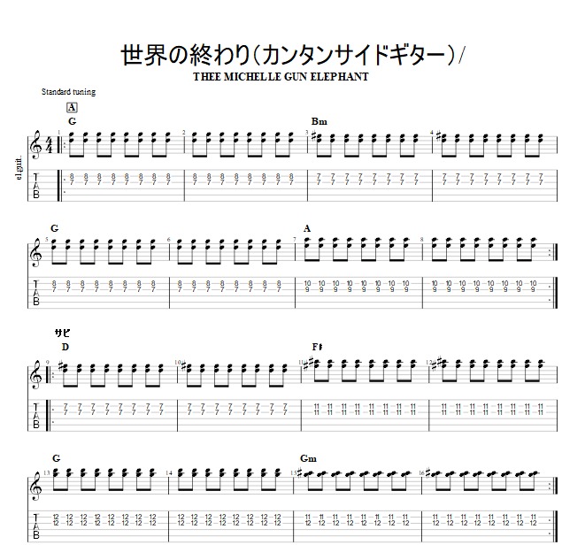 【世界の終わり/ミッシェル・ガン・エレファント】カンタン!サイドギターTAB譜