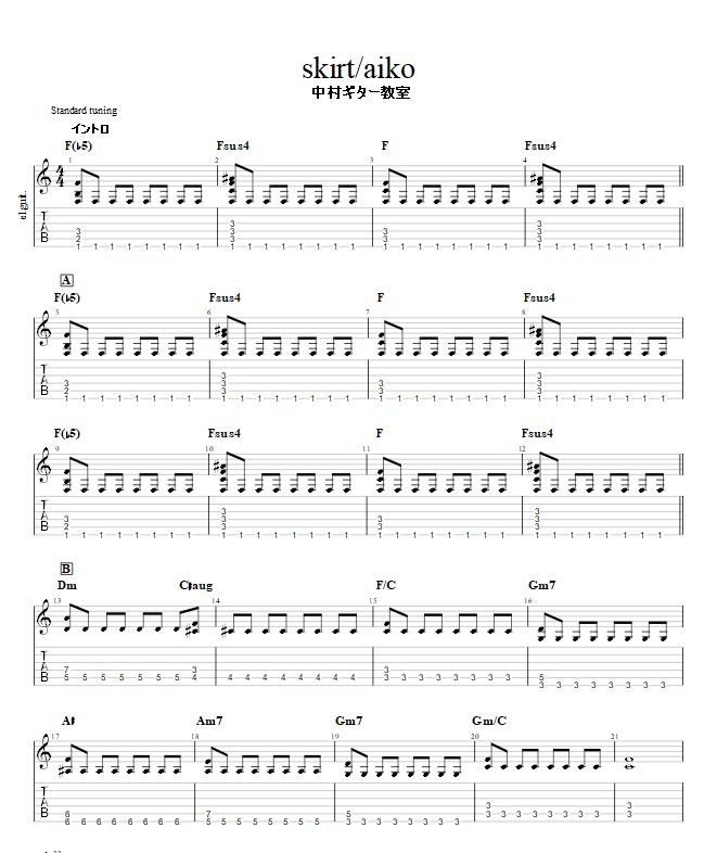 【skirt/aiko】カンタンtab譜のご紹介です。