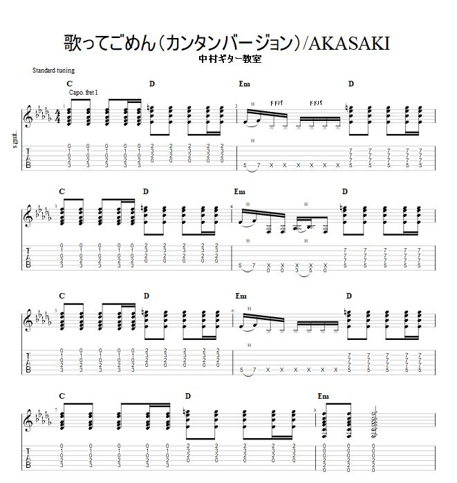 【歌ってごめん/AKASAKI】カンタンTAB譜