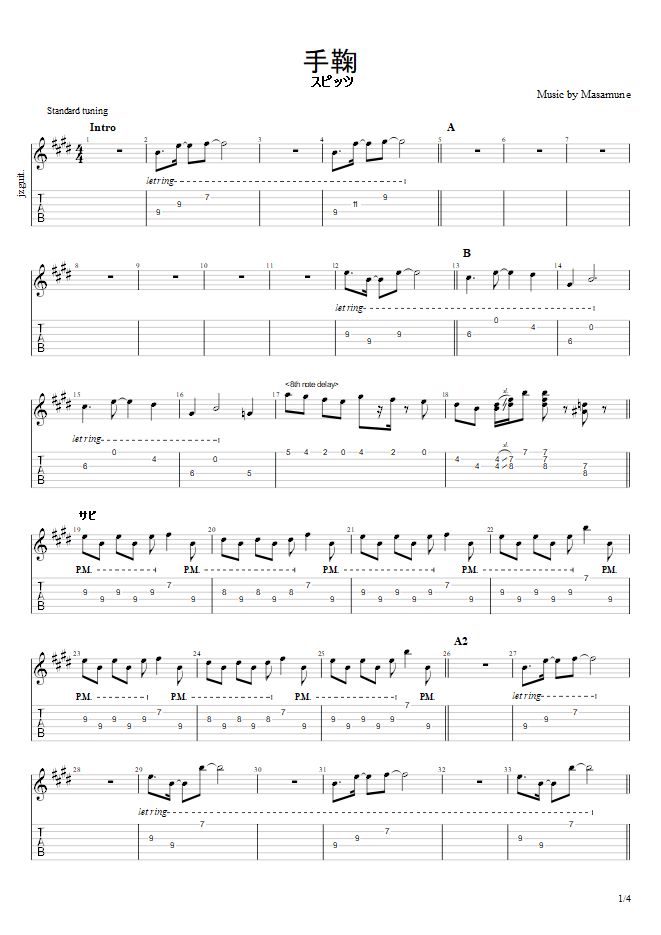 本日は、スピッツ好きには堪らない【手鞠】エレキギターtab譜作ってみました
