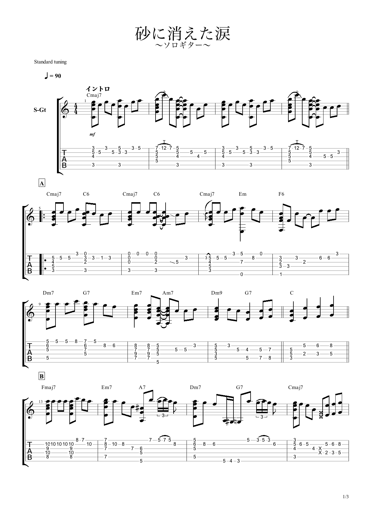 ソロギターとは何なのか?オリジナルTAB譜面【砂に消えた涙/弘田三枝子】を使って説明します。